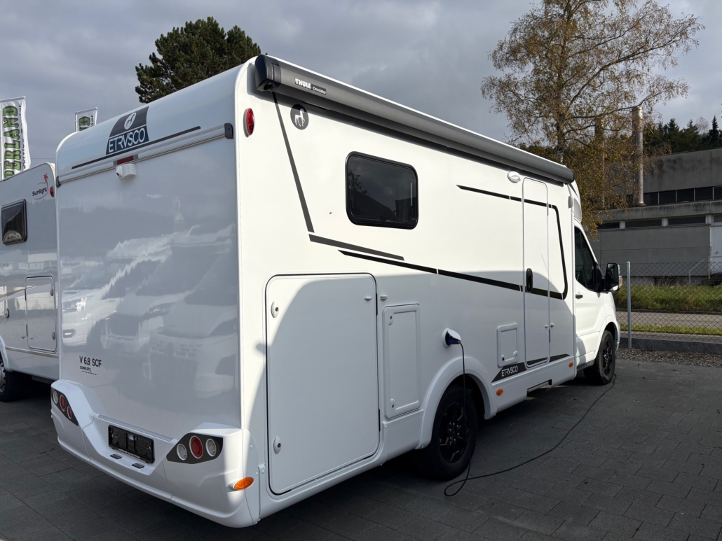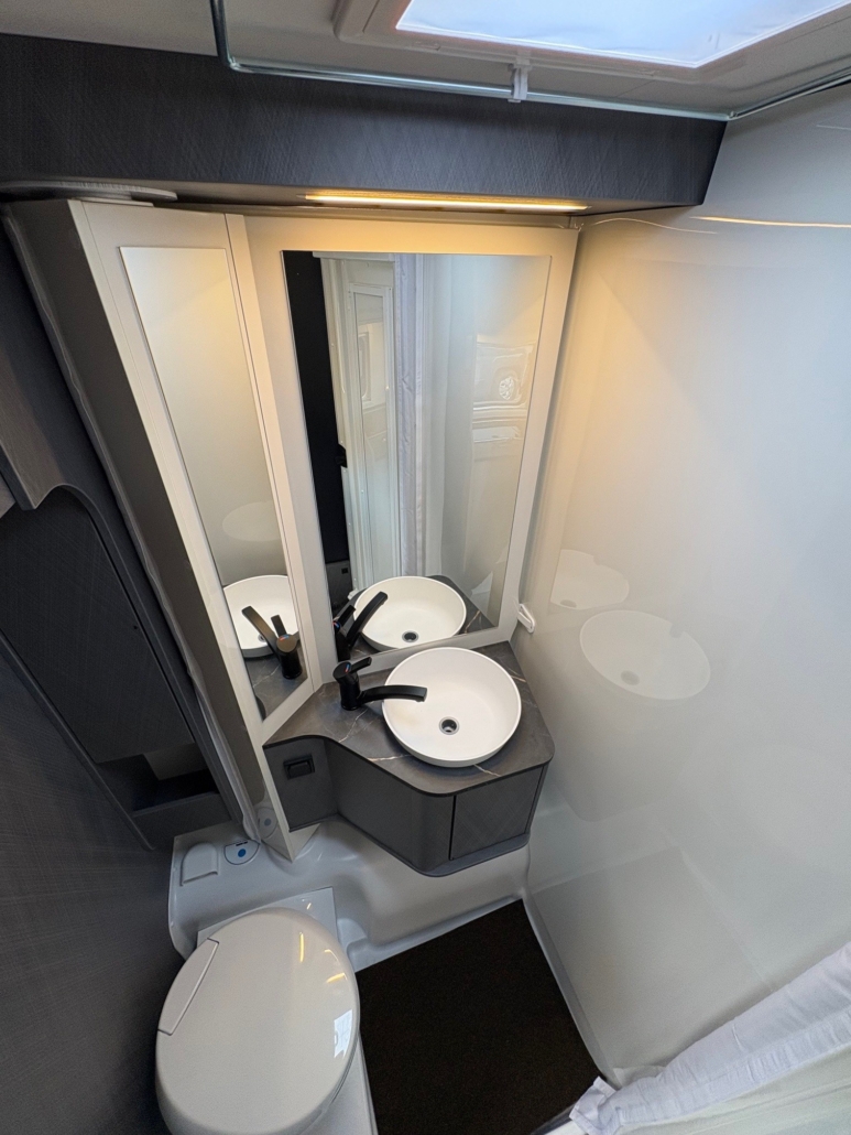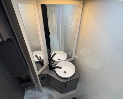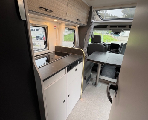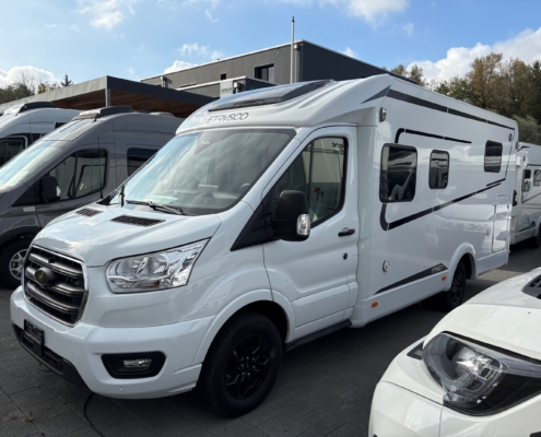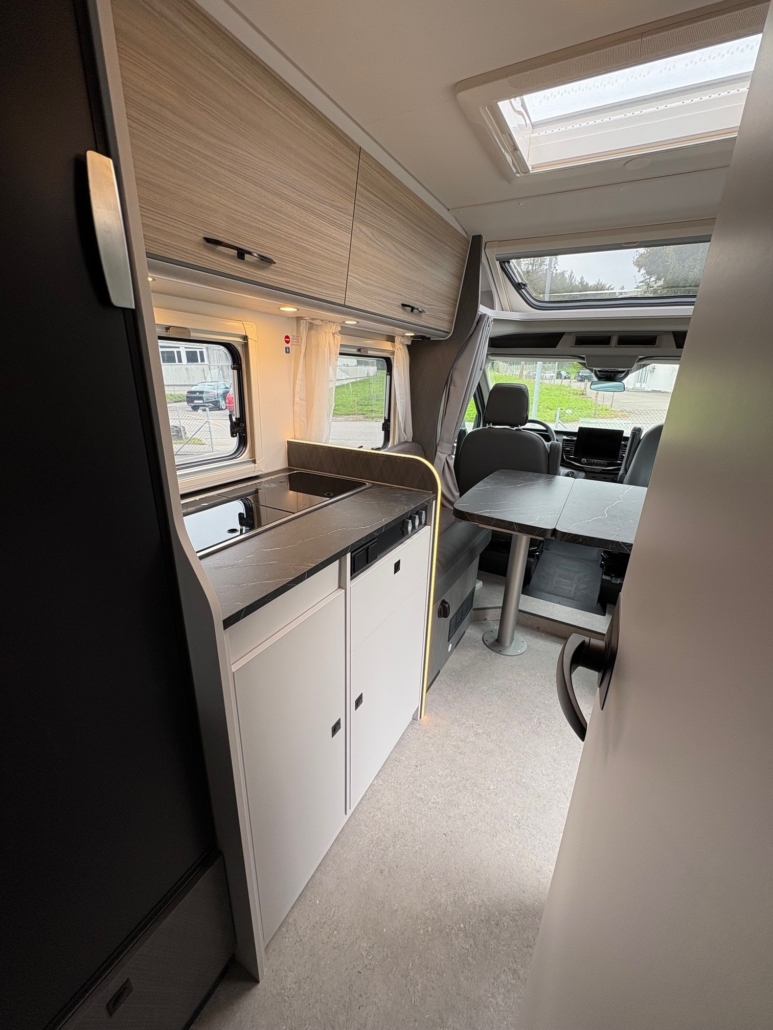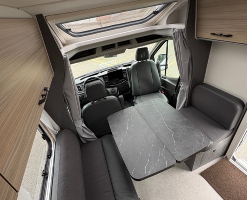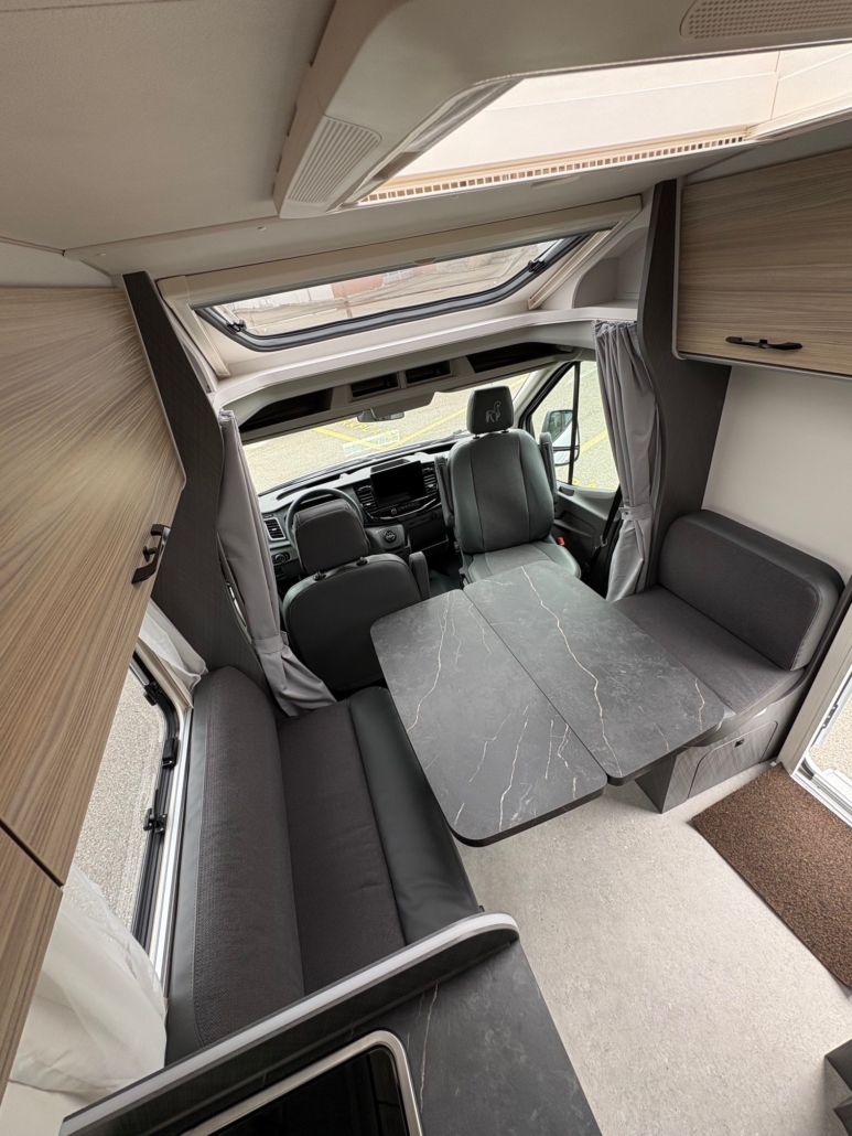 Chassis Paket, FORD 16″ Alufelgen schwarz, Fenster in T-Haube, Rahmenfenster, Abwassertank isoliert, Markise (manuell) 4 m, Gehäuse in anthrazit, Vorbereitungen für TV-Kabel 12V und TV-Halterung, Vorbereitung Dachklimaanlage, Vorbereitung Solaranlage, Automatikgetriebe, Elektrische Vorbereitung für Anhängekupplung, Isofix Kindersitzbefestigung für hintere Sitzbank, Heizung Combi 6 E (mit Elektroheizstab) inkl. digitales Bedienpanel, Fußbodenerwärmung elektrisch im begehbaren Bereich, Vorbereitung Dachklimaanlage,