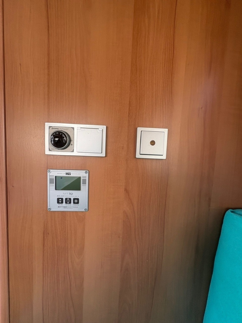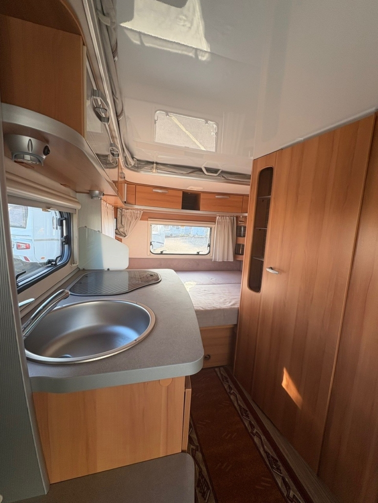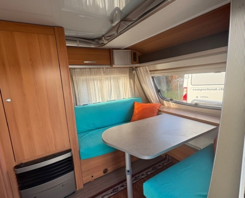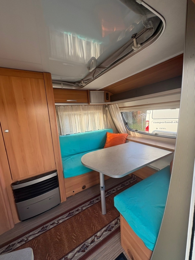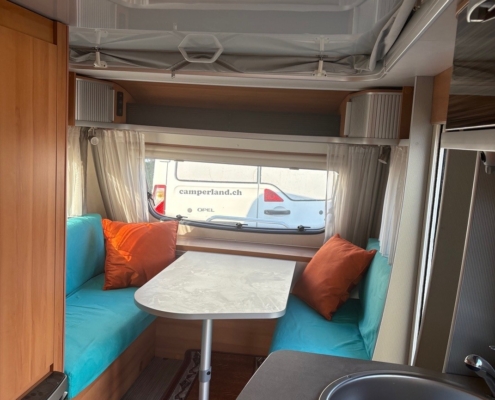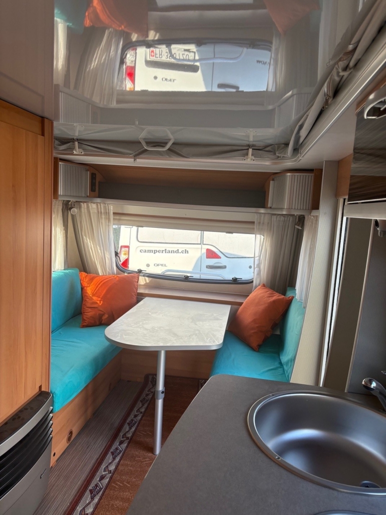 Antischlingerkupplung, Auflastung auf 1300 Kg, Reserverad im Gaskasten fix montiert, Hubdach aus GFK, optimale Stehhöhe, Seitenwände in Glattblech, Isolierung mit PUAL-Aufbau, 230 Volt – Steckdosen, fixes Doppelbett quer 193×135 cm im Heck, Sitzgruppe im Bug, Umbaubett 200×130- 99 cm, Gasheizung mit Umluft, Frischwassertank, Warmwasser durch Truma Therme 5 Liter, Banktoilette mit Füllstandsanzeige und Kassette auf Rädern, 3-Flammkocher, Kühlschrank mit Frostfach, Innenraumbeleuchtung umgerüstet auf LED, Fahrradträger für 2 Fahrräder auf Deichsel, Deichselabdeckung, AL-KO Stützrad Premium mit Stützlastanzeige, Autark – Paket inkl. festmontiertem Solarpanel auf dem Dach, AL-KO Mover MAMMUT